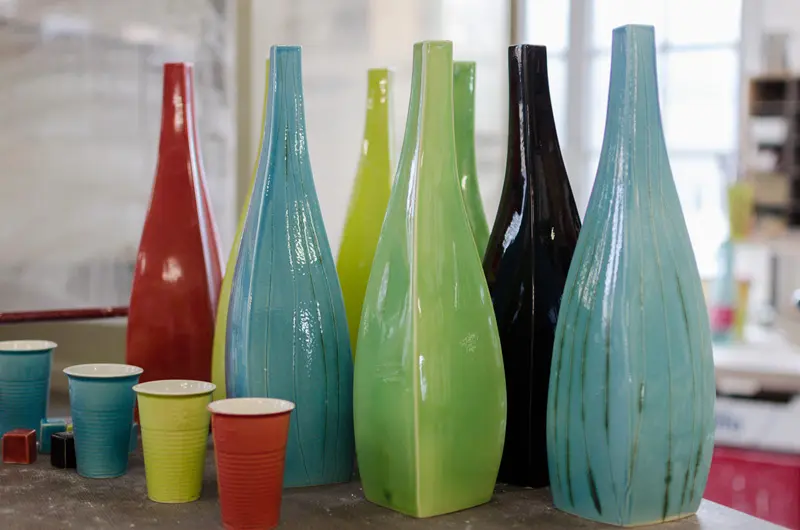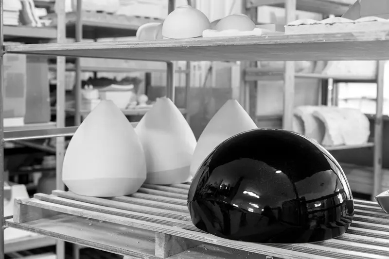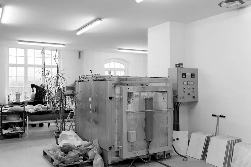 Das Herz des Neuzeughammers ist die große Werkstatt im Erdgeschoß - die Porzellanmanufaktur. Hier werden in echter Handarbeit sowohl Einzelstücke als auch ganze Produktserien - wie Leuchten oder Geschirr - aus Porzellan oder Keramik hergestellt.
